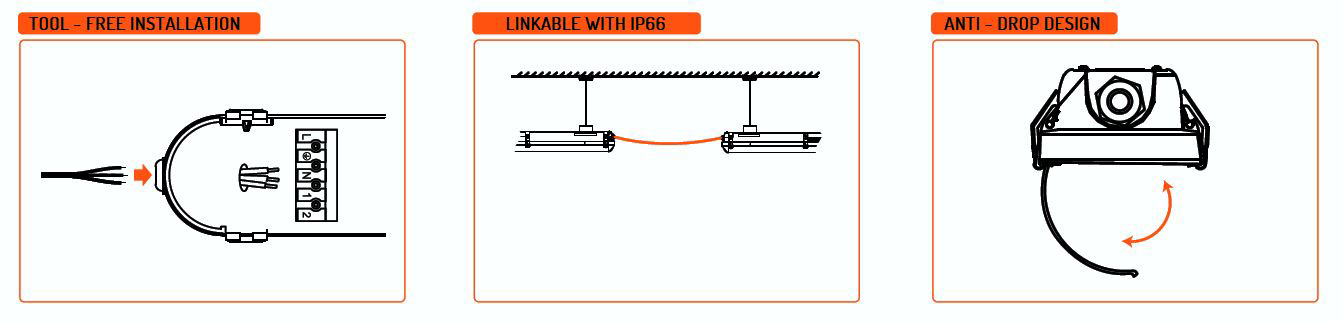 Duże osiągi - szybszy zwrot z inwestycji Wydajność świetlna 140 lm / W to imponujący wynik wśród „hermetyków”. Wysoki stosunek strumienia świetlnego do pobieranej mocy pozwala zmniejszyć koszty inwestycji co wiąże się bezpośrednio z szybszym zwrotem inwestycji. Oprawa RANGER świetnie spełni swoje zadanie zarówno w wąskich korytarzach i przejściach pomiędzy wysokimi regałami a także na otwartych przestrzeniach w zakładach produkcyjnych, wszystko to dzięki kątowi świecenia wynoszącemu 120°.