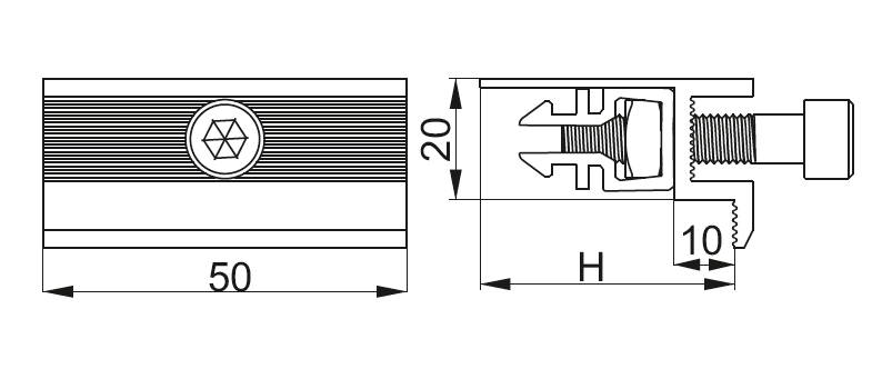 Boczny uchwyt panela wpinany klema końcowa KLICK BUFK50 897450 BAKS - wykorzystywany jest przy montażu konstrukcji fotowoltaicznych. Służy do mocowania paneli PV do profili aluminiowych lub ceowników (aby dobrać odpowiedni boczny uchwyt, należy uwzględnić wysokość panela fotowoltaicznego). Dużą zaletą produktu jest szybki zatrzaskowy sposób montażu oraz możliwość użycia we wszystkich szynach aluminiowych i uchwytach górnych lub dolnych. Uchwyt panela wykonany został z aluminium (EN AW-6063), dzięki czemu jest odporny na działanie czynników atmosferycznych, a jego solidna konstrukcja zapewnia stabilne mocowanie paneli. W skład produktu wchodzą: klema, śruba imbusowa SAM8, nakrętka kwadratowa NKWM8E oraz klips KLICK. Parametry techniczne: