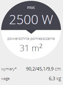 - seria i typ: Grzejnik elektryczny naścienny 2500W (31m2) F-119 konwektor elektryczny 500088 ATLANTIC