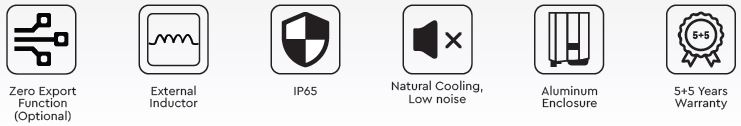 - standardy sieci: IEC 61727:2004, IEC62116:2014, IEC 60068-2-1:2007, IEC 60068-2-2:2007, IEC 60068-2-14:2009, IEC 60068-2-30:2005, IEC 61683:1999, DIN VDE 0126-1-1:2013, DIN VDE V 0124-100:2020, VDE-AR-N 4105:2018, G98:2019, C10/11:2019, AS/NZS 4777.2:2020, NB/T 32004-2018, PEA, ZVR