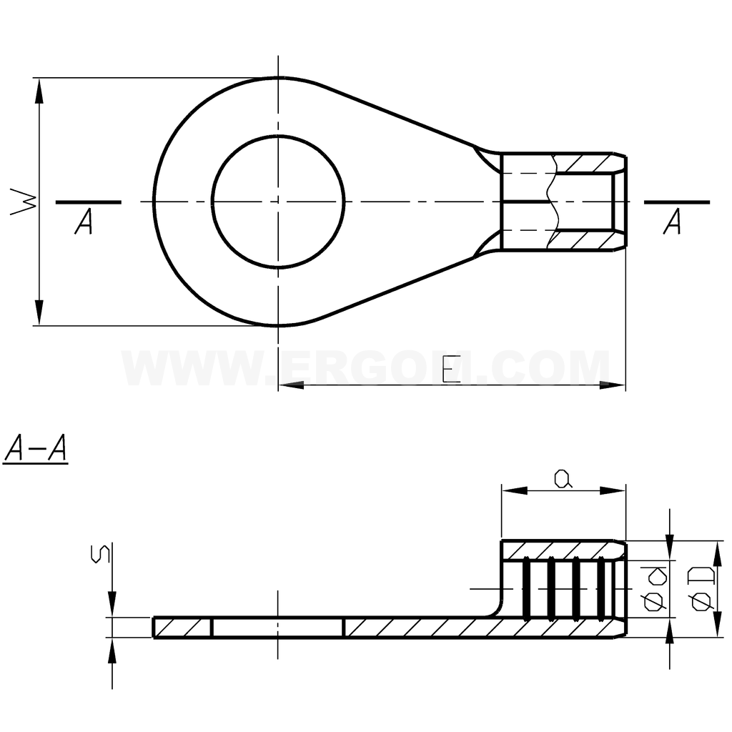 Końcówka kablowa KO 6/6 oczkowa nieizolowana E09KO-01010102700 ERGOM - Końcówki kablowe miedziane przeznaczone są do zakończeń przewodów miedzianych. Zastosowanie końcówki kablowej zwiększa bezpieczeństwo naszego połączenia kablowego poprzez zmniejszenie przegrzewania się przewodów i izolacji. Trwałe mocowanie końcówek odbywa się za pomocą specjalnej prasy. Produkt został wykonany z najwyższej jakości miedzi, co zapewnia mu długi czas eksploatacji oraz odporność na uszkodzenia mechaniczne. Parametry techniczne: