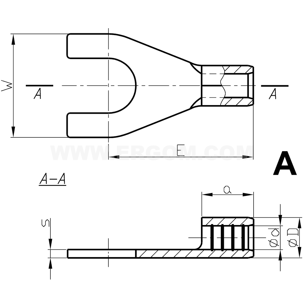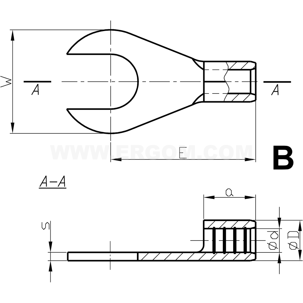 Końcówka kablowa KW 6/5 widełkowa nieizolowana E09KO-01020102700 ERGOM - Końcówki kablowe widełkowe miedziane przeznaczone są do zakończeń przewodów miedzianych. Zastosowanie końcówki kablowej zwiększa bezpieczeństwo naszego połączenia kablowego poprzez zmniejszenie przegrzewania się przewodów i izolacji. Trwałe mocowanie końcówek odbywa się za pomocą specjalnej prasy (w przypadku żył sektorowych należy najpierw przeformować żyłę na okrągło). Produkt został wykonany z najwyższej jakości miedzi, co zapewnia mu długi czas eksploatacji oraz odporność na uszkodzenia mechaniczne. Końcówki zostały wypełnione smarem kontaktowym. Parametry techniczne: