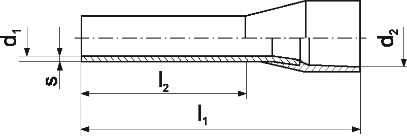 Końcówka tulejkowa 20szt. TE 95-25/20 ERKO- Standardowe końcówki tulejkowe z izolacją poliamidową, które służą do bezpiecznego i trwałego zakańczania przewodów miedzianych wielodrutowych. Końcówki z serii TE producenta ERKO wykonane zostały z wysokiej jakości miedzi cynowanej galwanicznie wg standardu DIN 46228 i charakteryzuje je wysoka trwałość termiczna (-40°C do +125°C). Dostępne są w szerokim zakresie rozmiarów, które dopasowane są do przekrojów żył (0,14-150 mm2). Aby poprawnie zaprasować końcówkę na przewodzie, należy użyć odpowiednio dobranego narzędzia. Do końcówek o przekroju żyły 95 mm2 zalecane są praski EPZC300, EPZ300, GZ300, HR300, PRZ240, GO300, HRZ300, GU120, HR100-U, PR240, R50 (dokładny opis narzędzi potrzebnych do zaprasowania innych rozmiarów końcówek znajduje się w karcie katalogowej produktu). Parametry techniczne: