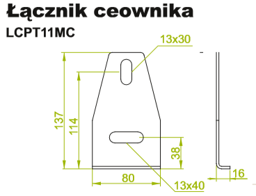 Łącznik ceownika LCPT11MC gr. blachy 3mm BAKS - Produkt służy do łączenia konstrukcji, których członem jest ceownik montażowy oraz wzmocniony. Materiał, z jakiego wykonany jest łącznik to najwyższej jakości stal nierdzewna, która zapewnia długi czas eksploatacji oraz świetną stabilność konstrukcji fotowoltaicznych. Do montażu najlepiej wykorzystać śruby SGKFM10x20. Parametry techniczne:
