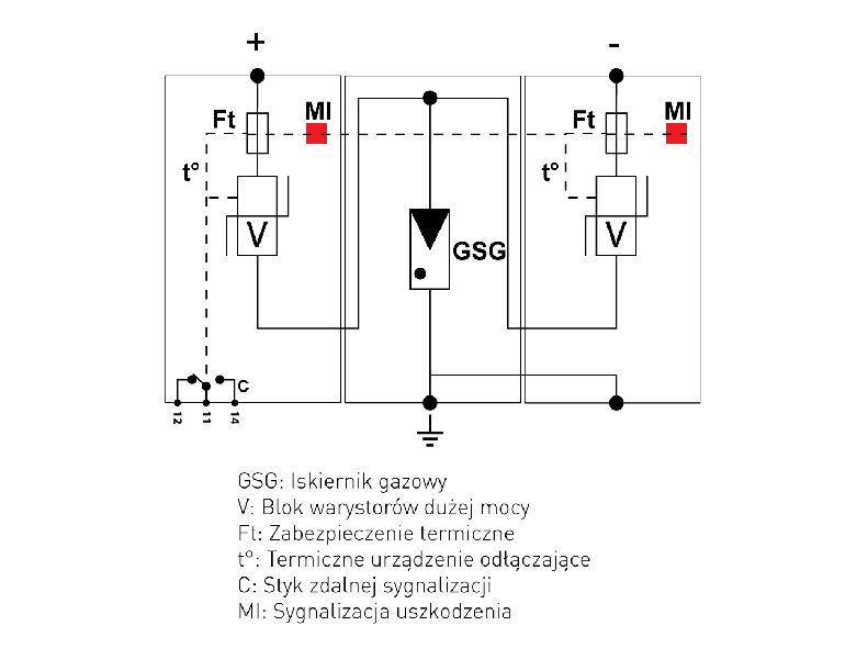 Ogranicznik przepięć PV DC Typ 2 (C) 1000V 3P 20kA 2kV DS50PVS-1000/G C480341 JEAN MULLER