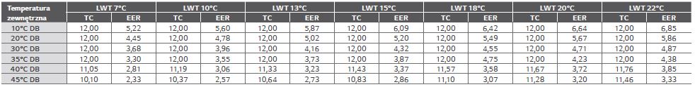 - COP do 4,9 (temperatura zewnętrzna 7 °C, średnia temperatura wody na wyjściu 35°C),