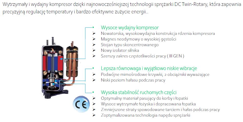 1. Kompresor produkowany przez lidera rynku producenta Mitsubishi.