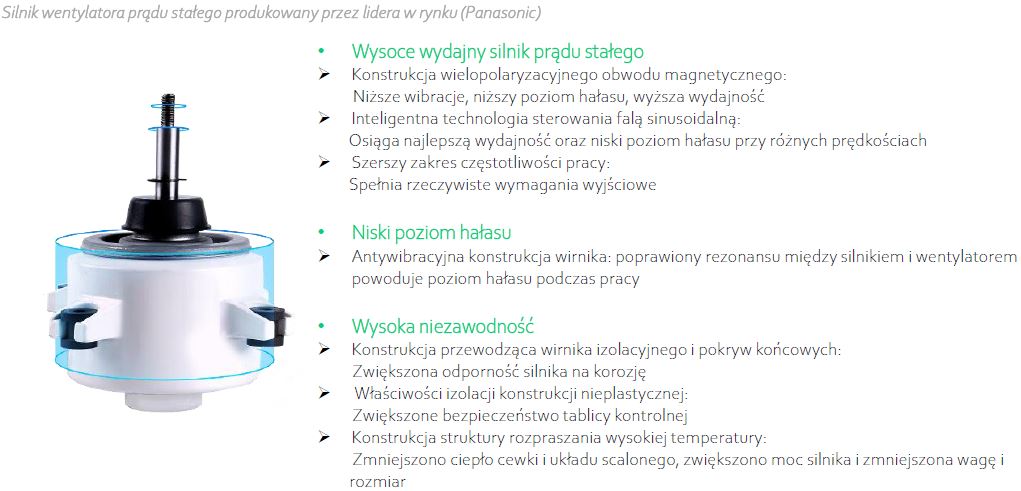 2. Silnik wentylatora prądu stałego produkowany przez lidera w rynku producenta Panasonic.