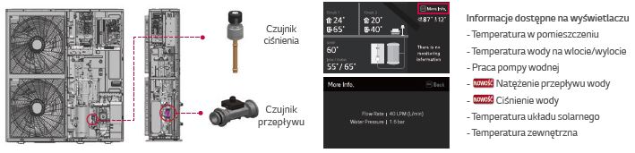 - wbudowane czujniki: przepływu wody oraz ciśnienia do monitorowania obiegu wody w czasie rzeczywistym,