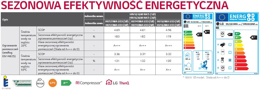 - Wysoka efektywność energetyczna (SCOP 4,65 / A+++ dla 35°C oraz SCOP 3,36 / A++ dla 55°C),