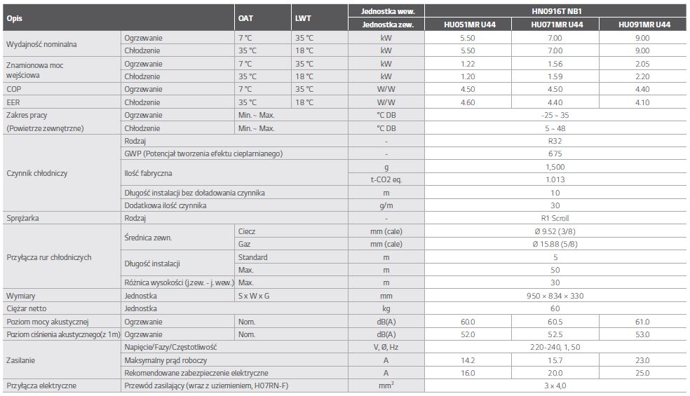 Specyfikacja techniczna jednostka zewnętrzna: