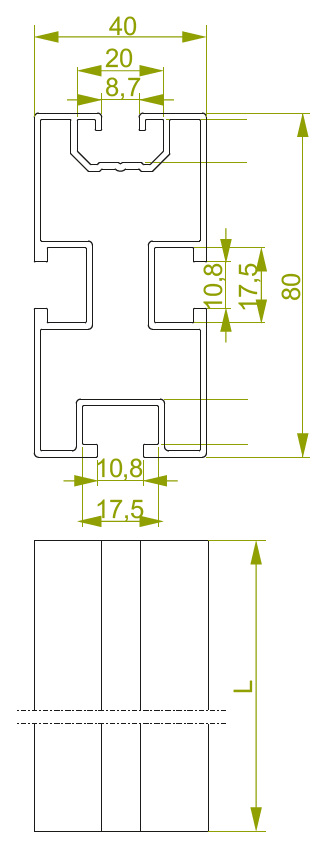 Profil aluminiowy 2,1m wys.80mm PAL40H80/2,1 gr. blachy 1,5mm 894421 BAKS - jest to element wykorzystywany przy montażu konstrukcji fotowoltaicznych na dachach skośnych. Służy do tworzenia konstrukcji wsporczych pod panele PV. Wykonany został z aluminium (EN AW-6063), dzięki czemu jest odporny na działanie czynników atmosferycznych. Poprzez zastosowanie specjalnego przekroju, profil posiada zwiększoną wytrzymałość i zapewnia stabilne podparcie paneli PV. Dodatkowo, odpowiednio dobrana szerokość gniazd w profilu uniemożliwia obracanie się śrub i nakrętek. Parametry techniczne: