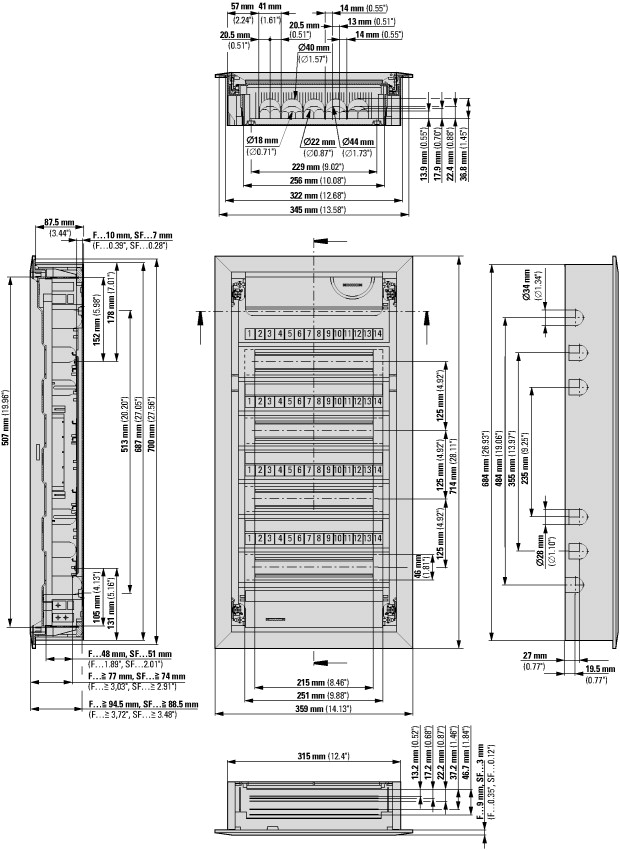 Rozdzielnica elektryczna KLV-48UPS-F podtynkowa 4x12(48) metal drzwi pełne 178820 EATON - jest elementem sieci (instalacji) elektrycznej, zawiera urządzenia i podzespoły służące do: łączenia, przerywania, sterowania, ochrony, pomiaru i regulacji obwodów elektrycznych, silników i mechanizmów. Rozdzielnice serii KLV posiadają stabilną konstrukcję kasety podtynkowej ze zintegrowaną poziomicą i można je montować w ścianach murowanych jak również gipsowych. W zestawie z rozdzielnicą znajdują się listwy zaciskowe N/PE. Cała seria KLV jest zgodna z normami IEC/EN 60670-24 i IEC/EN 62208 oraz IEC/EN 61439-3. Parametry techniczne: