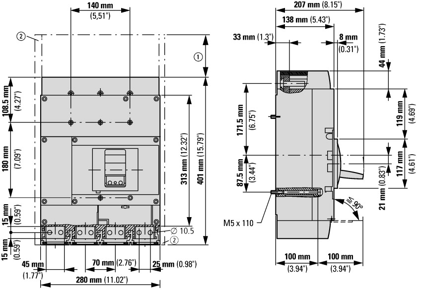 Rozłącznik mocy do fotowoltaiki PV 4P 1000A 1000V rozłącznik izolacyjny DC N4-4-1000-S1-DC 119891 EATON - posiada cechy wyłącznika głównego zgodnie z IEC/EN 60204 i VDE 0113. Rozłączniki N przeznaczone są do zastosować w elektrowniach fotowoltaicznych gdzie prądy znamionowe sięgają 1600 A. Rozłączniki można łączyć z wyzwalaczami napięciowymi i modułami wyłączników pomocniczych, a także z napędem zdalnym. Do przełączenia DC wymagane jest połączenie szeregowe wszystkich 4 torów prądowych. W nieuziemionych sieciach (np. IT) instalację wykonać w taki sposób, by wykluczyć podwójne zwarcie z ziemią. Przełączników nie można łączyć z techniką wtykową/wysuwania i/lub tylnym przyłączem. Wyłącznik jest zgodny z IEC / EN 60947-3 i posiada koordynację izolacji wg IEC / EN 60947. Parametry techniczne: