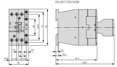 Stycznik mocy 230V AC 1NO 17A DILM17-10-EA 189909 EATON- Styczniki inaczej łączniki elektryczne, to urządzenia służące do załączania i wyłączania obwodów, w których występuje duże obciążenie elektryczne. Najczęściej wykorzystywane są w przemyśle do obsługi silników, oświetlenia, pomp oraz innych odbiorników elektrycznych charakteryzujących się dużą mocą. Styczniki mocy DILM o mocy do 170 A charakteryzują się wysoką niezawodnością działania. Wyposażone zostały w podwójne zaciski skrzynkowe. Posiadają zabezpieczenie przed dotknięciem palcem i ręką (VDE 0160 część 100). Przeznaczone są do montażu na płycie montażowej przy użyciu śrub. Styczniki do mocy 72 A możemy też zamocować na szynie 35 mm (zgodnie z IEC/EN 60715). Dużą zaletą jest jednakowy rozmiar styczników na prąd przemienny AC i stały DC - znacząco ułatwia to projektowanie instalacji. Styczniki mocy z serii DILM EA spełniają wymagania norm IEC/EN 60947, VDE 0660, UL, CSA. Styczniki DILM producenta EATON posiadające rozszerzenie "EA" to nowa seria, która zastępuje poprzednie modele. Parametry techniczne, wymiary oraz akcesoria pozostają takie same. Zmianie ulegają napięcia cewek AC/DC, zakres prądowy oraz certyfikaty. Charakterystyka ogólna styczników mocy DILM (z rozszerzeniem "EA"):