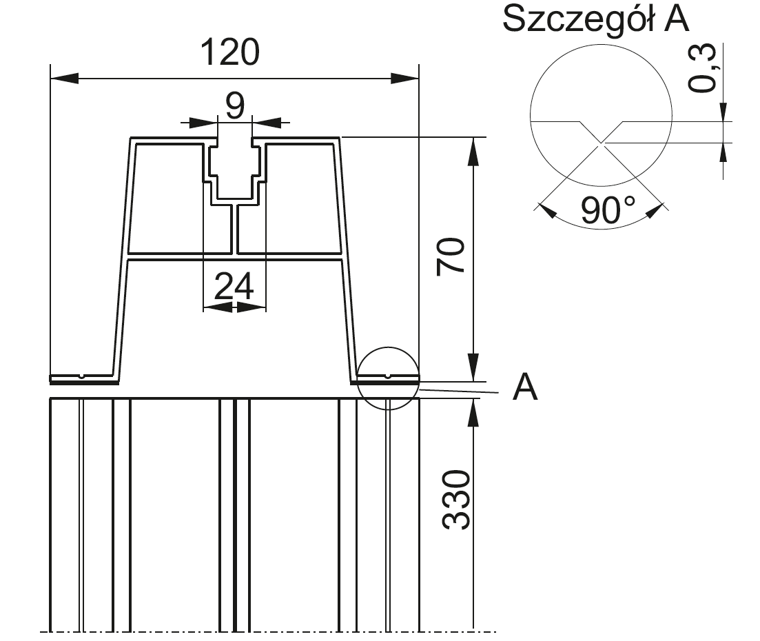 Szyna montażowa aluminiowa 33cm wys.70mm blacha trapez SMA70/033 890733 BAKS- wykorzystywana jest przy montażu instalacji fotowoltaicznych np. w konstrukcji DS-V6aN. Służy do mocowania paneli fotowoltaicznych do dachu pokrytego blachą trapezową. Szyna wykonana została z wysokiej jakości aluminium (EN AW-6063), dzięki czemu jest odporna na korozję i działanie czynników atmosferycznych. Dodatkowo szyna posiada specjalny przekrój, który zwiększa jej wytrzymałość oraz rowki ułatwiające pozycjonowanie wkrętów przy wkręcaniu. Dużą zaletą szyny jest jej wysokość, która zapewnia dobrą wentylację pod panelami PV. Do montażu należy użyć min. 4 wkręty SMDP6x25E. Profil posiada uszczelkę na całej długości miejsca styku z blachą. Parametry techniczne: